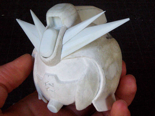 本体はプラ板から削り出した目を付けた以外特に変化はありません。(前回までの状態