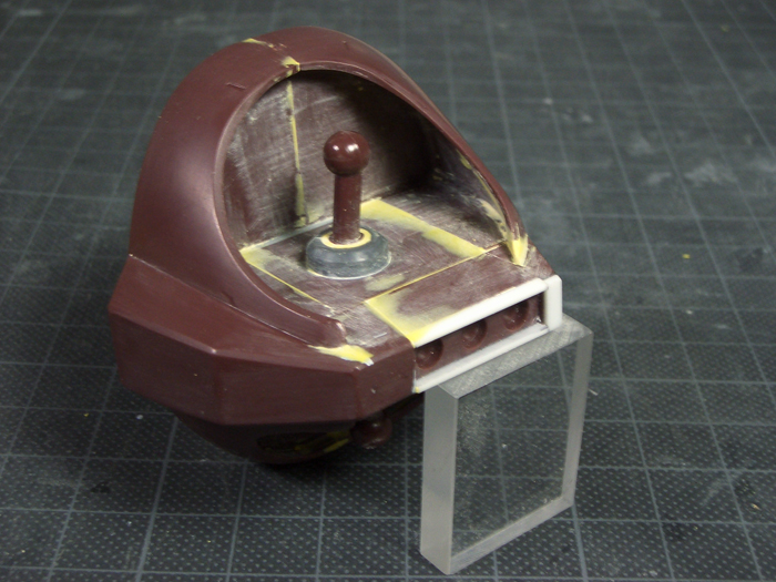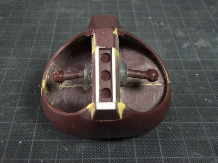 その後、各パーツを接着し、隙間などをパテ(黄)やプラ棒(白)で埋めました。