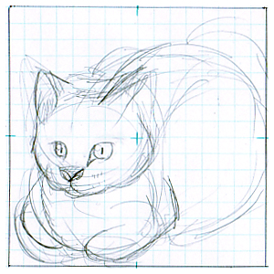 方眼紙へのラフスケッチ段階ではこんな絵でした。
