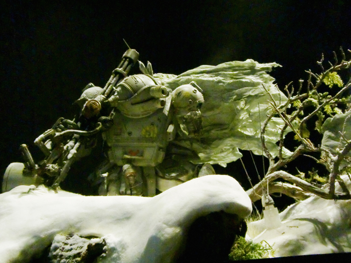 普通ジオラマの台が地面でそこに人などが立っているというのが定石ですが、上も下もない宇宙空間を大胆な構図で表されていました。