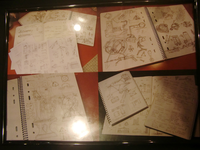展示品以外にも、上のような製作に当たってのメモ書きやスケッチ、製作現場のの写真なども飾られていました。