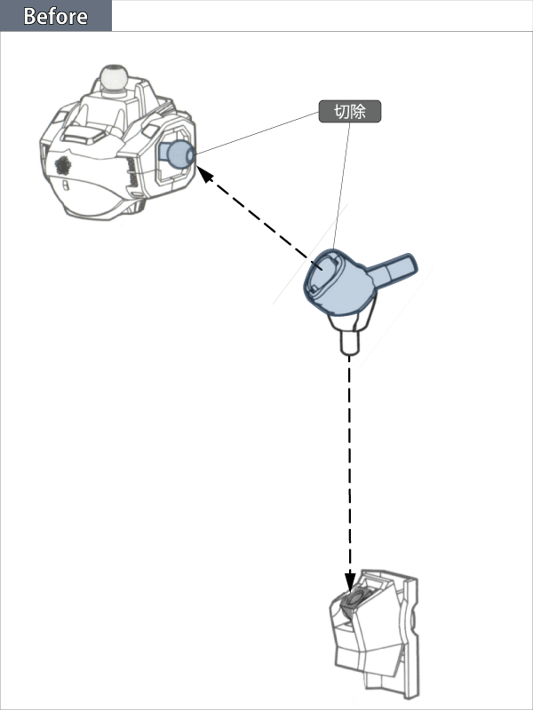 キットの元々の構造は下図のように腕の付け根がボールジョイントで接続され、肩と上腕は一体化していました。