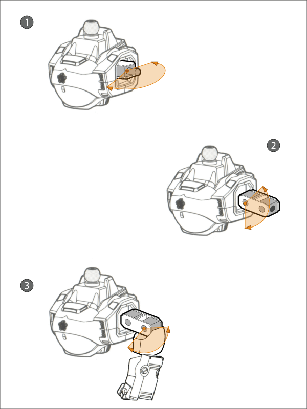 さらに、肩も同様に自作(2)し、肩の付け根側は上下方向へのスイングにし、もう一方を上腕の可動用にして、パーツも切り離して、可動軸(3)を差し込む構造に変更しました。