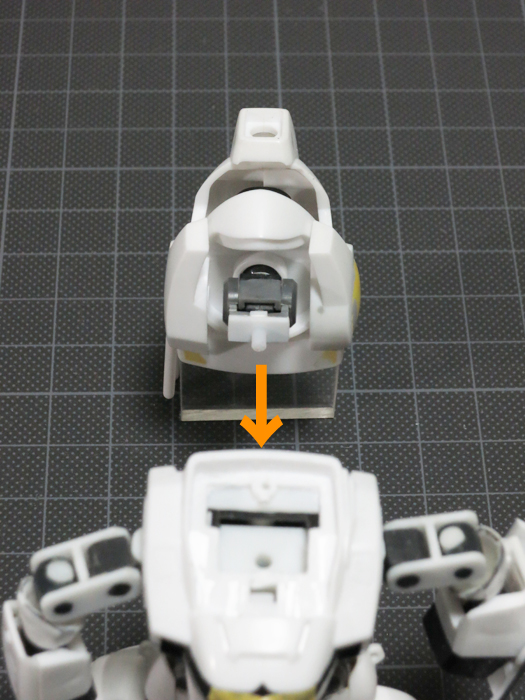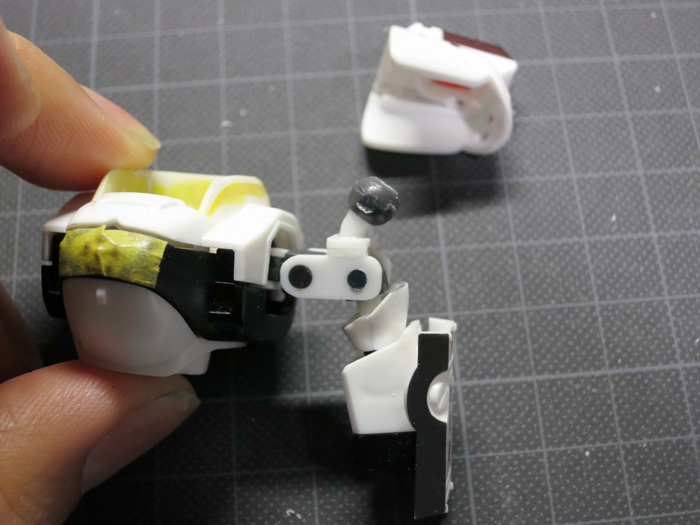 顔パーツに元々ついていたボールジョイントの穴と先程胴体側に入れたプラ板の穴と接続するようにしました。