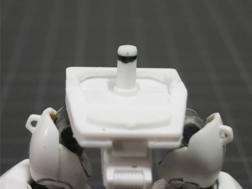 キットのままでは上半身と下半身がくっつきすぎてボールジョイントが機能していませんでした。なので下のように軸棒を1mm延長して上下を離して動くようにしました。