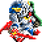 私が小学生時代に流行っていたカードダス「SDガンダム外伝 ラクロアの勇者」の主人公 騎士ガンダムとサタンガンダムが対峙しているシーンをイメージしてドットヴィネットで再現してみました。