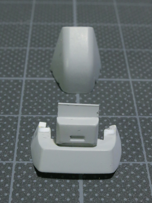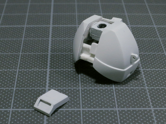 このパーツは中央で割れ、左右に分割されていたので、これを切り離してから接着して別パーツにしました。