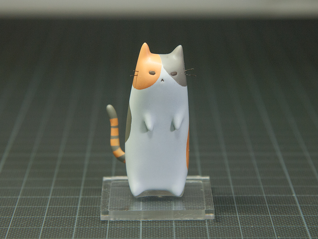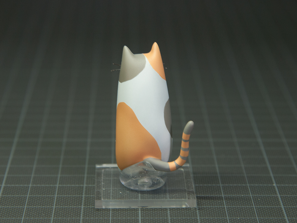 この3匹はそのままでは自立しないので以下の様なスタンドを作りました。まずは三毛用から。