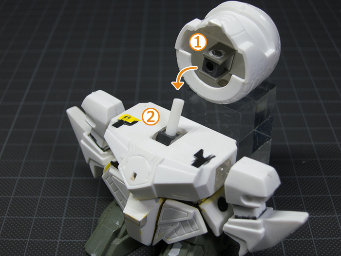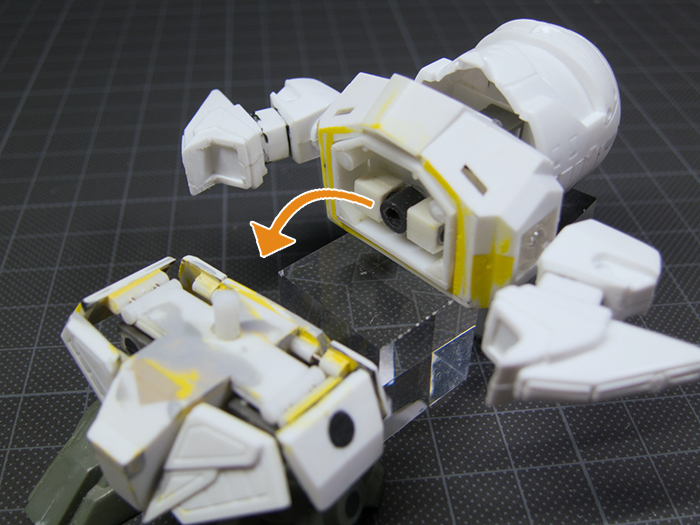 こちらはまず、腰の部分で上下にカットし、ここでもポリキャップを入れ、以下の画像のような回転機構を追加。