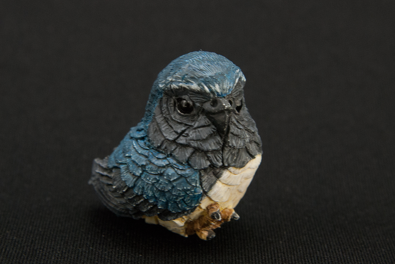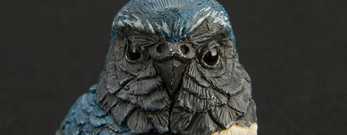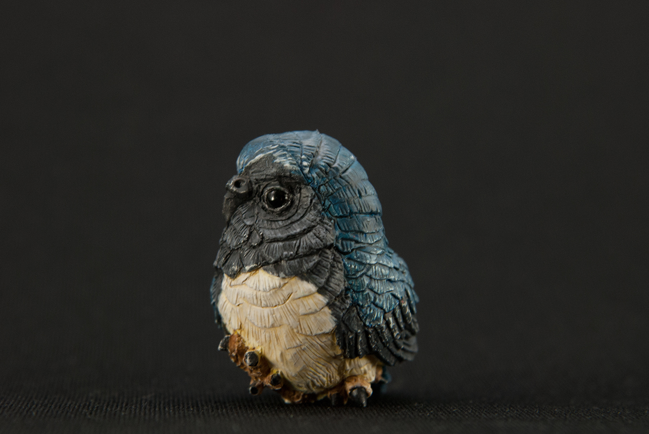 こうすることで羽との質感の違いを出し、目を際立てさせました。