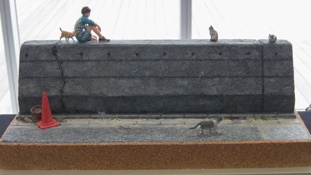コンクリートの防波堤の質感などもさることながら、何と言っても猫のフィギュアが良かったです。