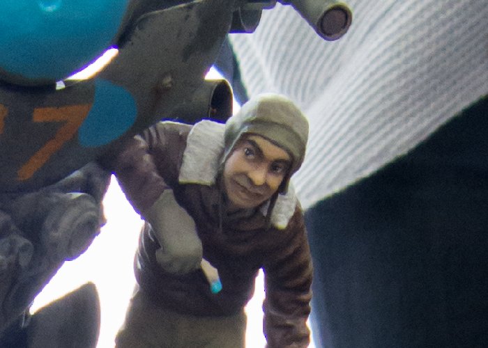 土台の水たまりの質感や小物もいいのですが、落書きをしてる兵士の表情にとても味があります。