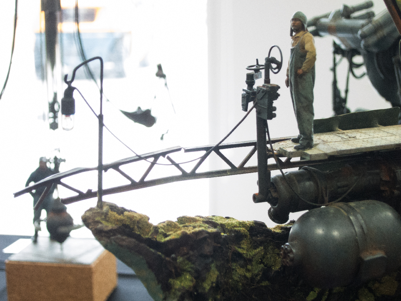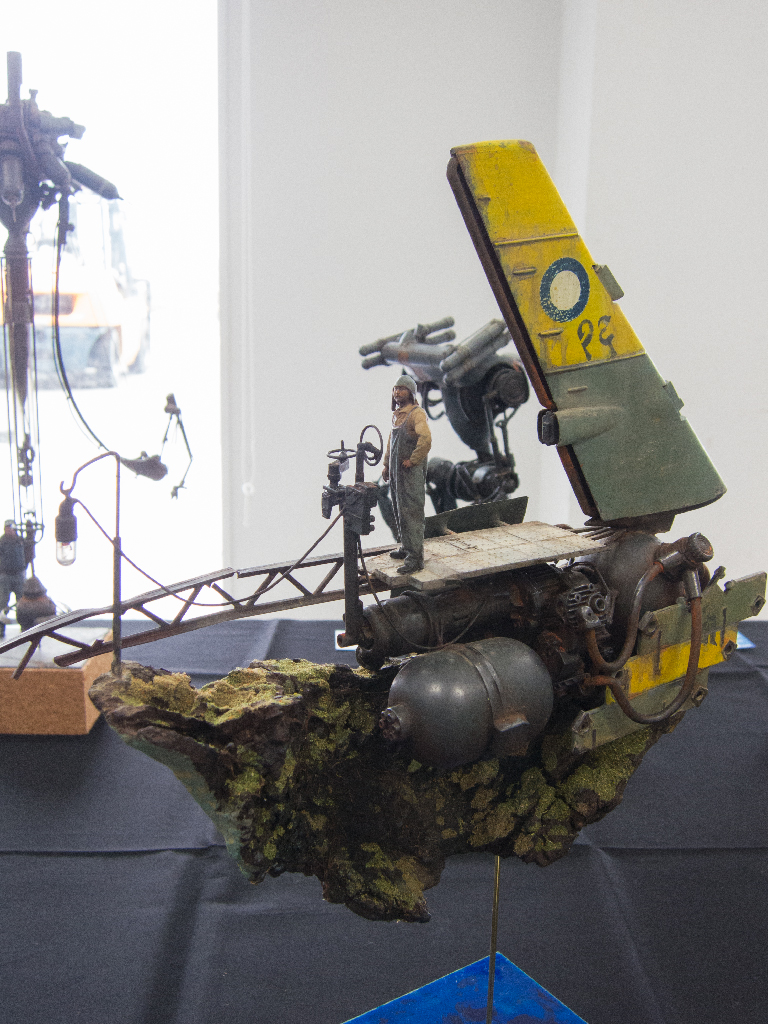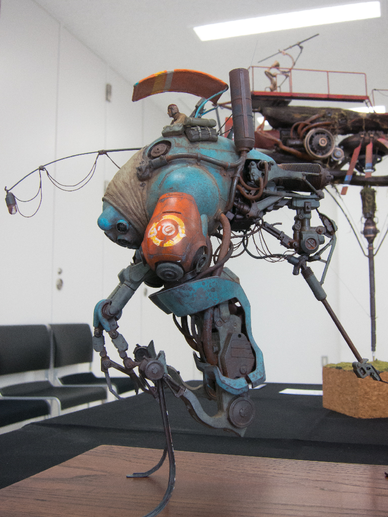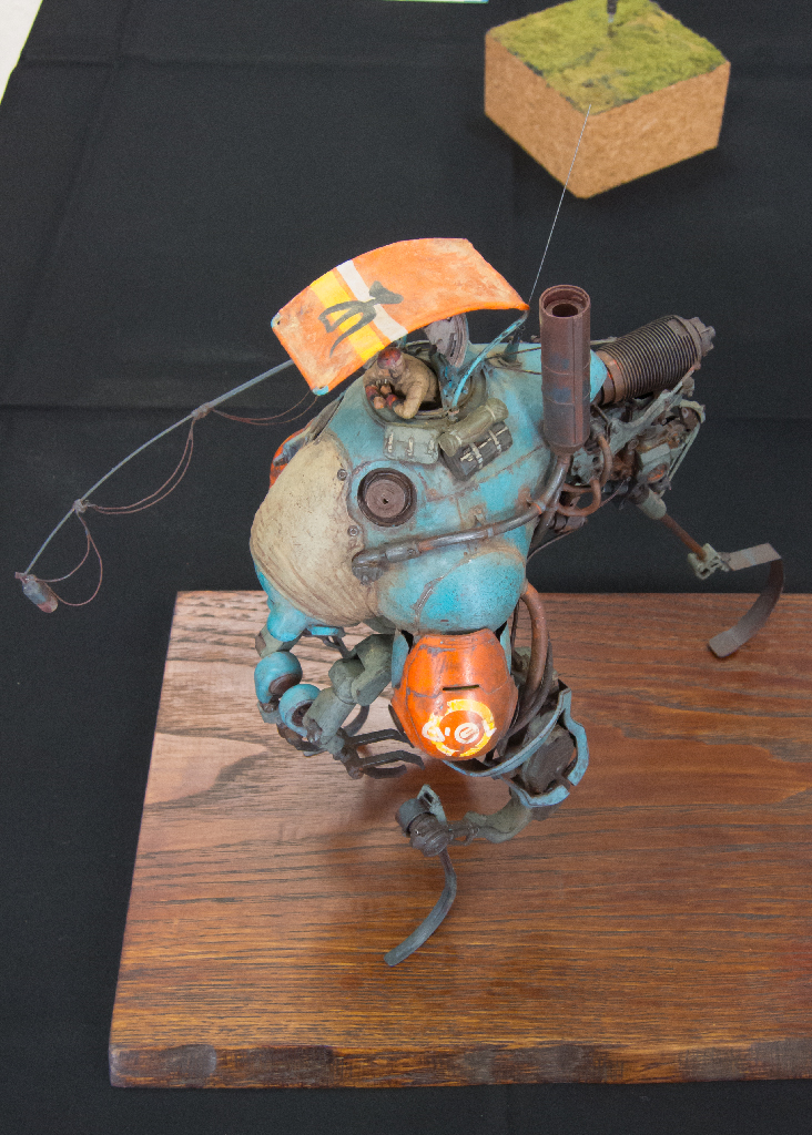 こちらの作品では他ジャンルの各パーツのミキシングもさることながら、金属製の機械、人とその上にある日除けの布という質感のミキシングもされていて、実に見応えがある一品でした。