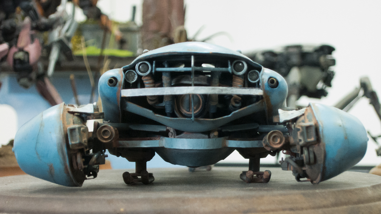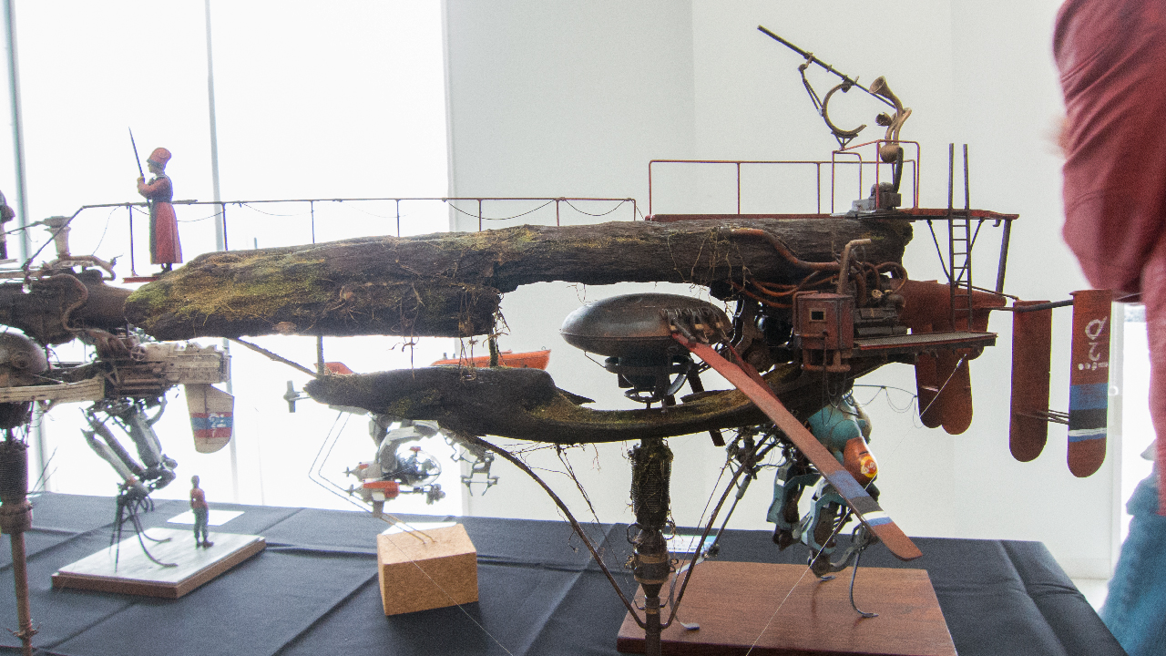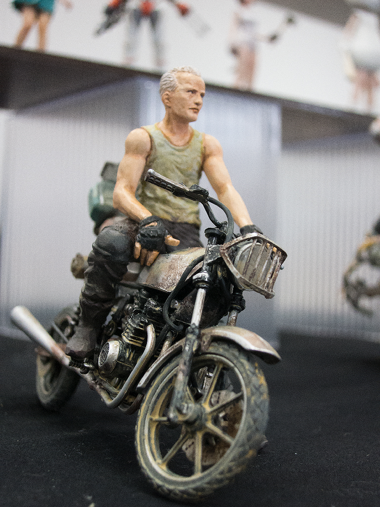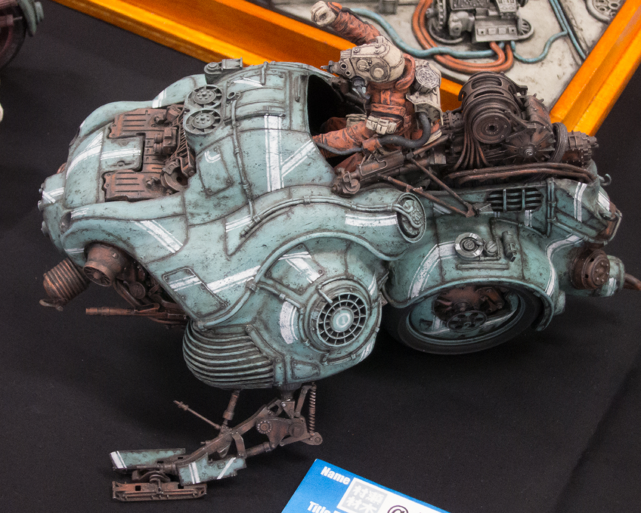 こちらの作品では他ジャンルの各パーツのミキシングもさることながら、金属製の機械、人とその上にある日除けの布という質感のミキシングもされていて、実に見応えがある一品でした。