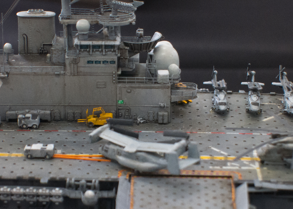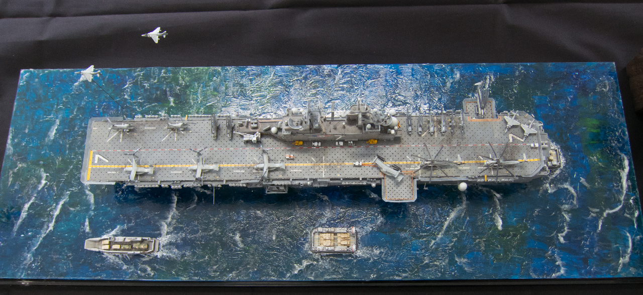 船自体の作り込みもさることながら、看板上にはヘリ、トラック、フォークリフトと実にてんこ盛りでした。