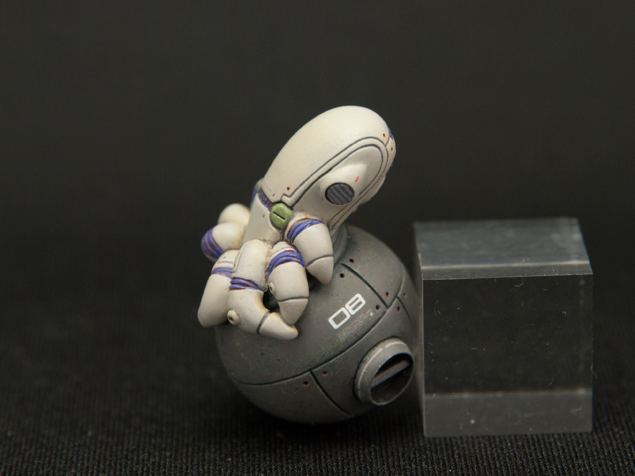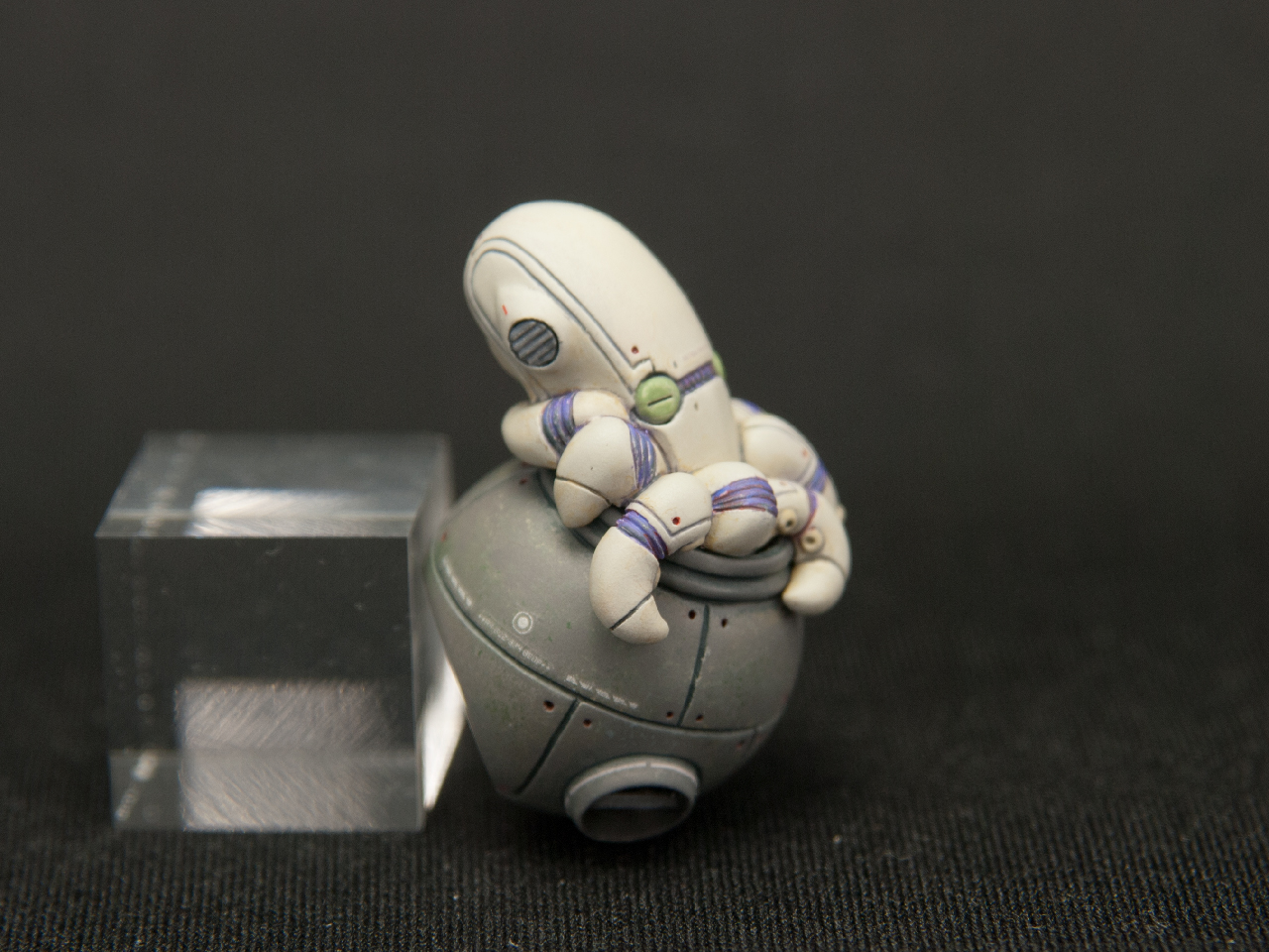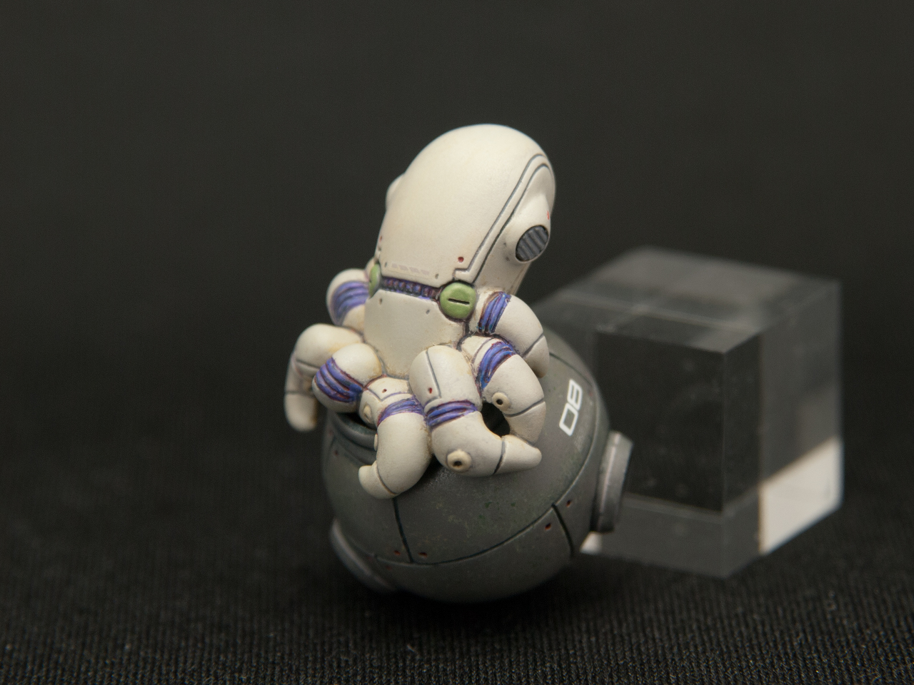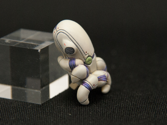この塗り方にしたのは、蛸坊の生物的(?)な質感と壺の無機質で古びた質感の違いを出してみたくなったので、塗り方自体を変えてみました。