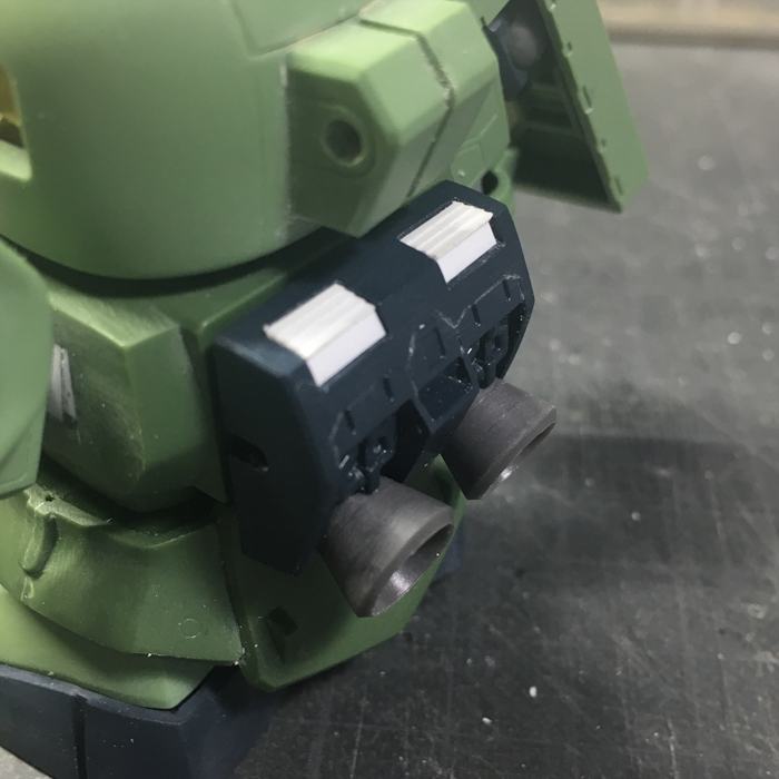 バーニアは市販品に置き換え、上面の排気口はモールド入りのエバーグリーンのプラバンに置き換えています。