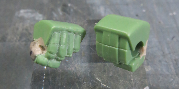このパーツは武器を差し込むための穴と肉抜きがされているので裏がスカスカで形状もかなり簡易的なものでした。