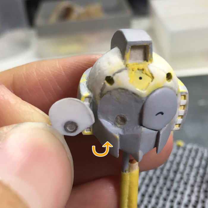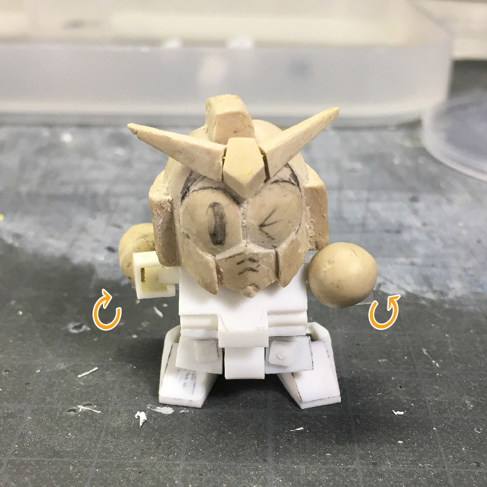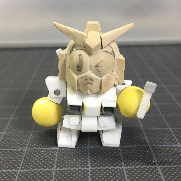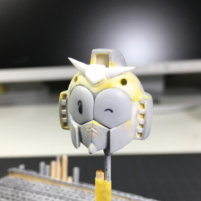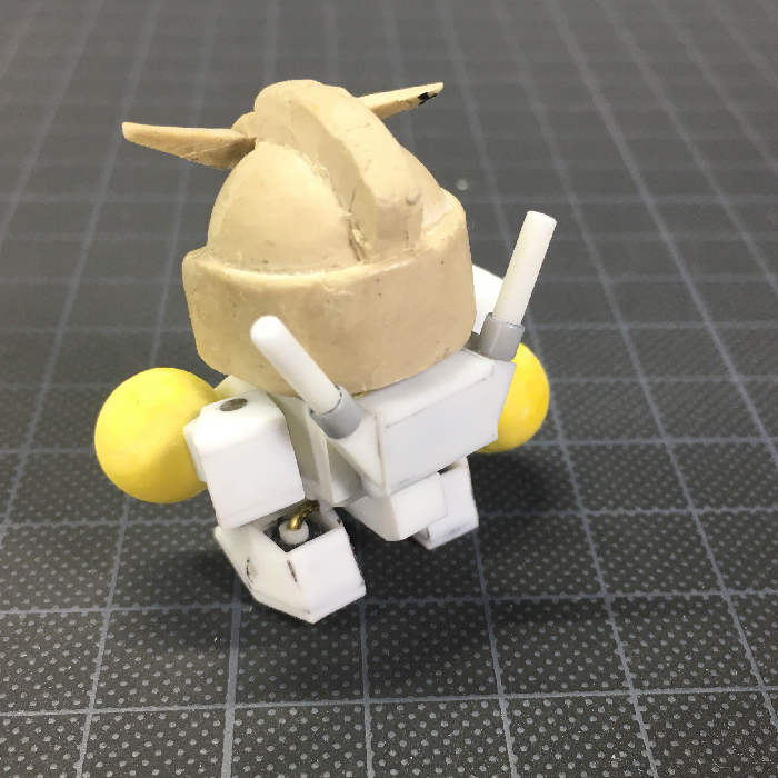 サフェ前の状態は上図のようにほぼパテ製、角(アンテナ)はプラ板製です。