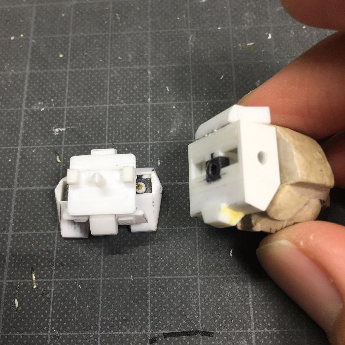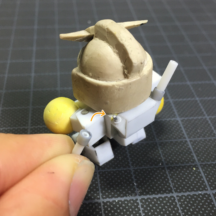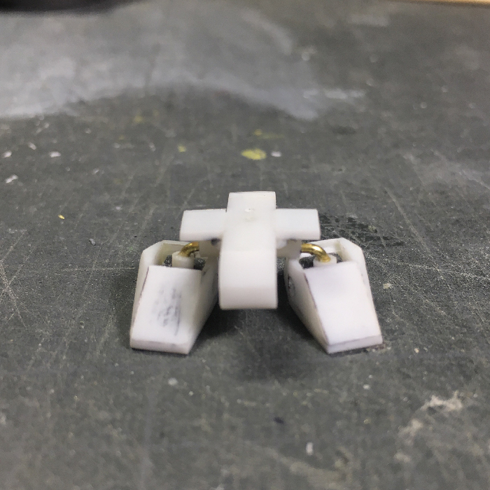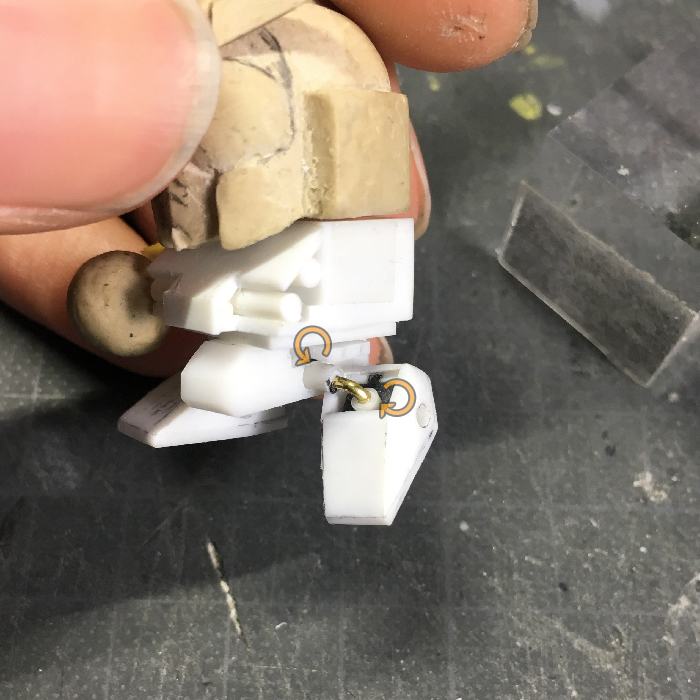 脚部はプラ棒と真鍮線で作った軸で本体と接続しています。
