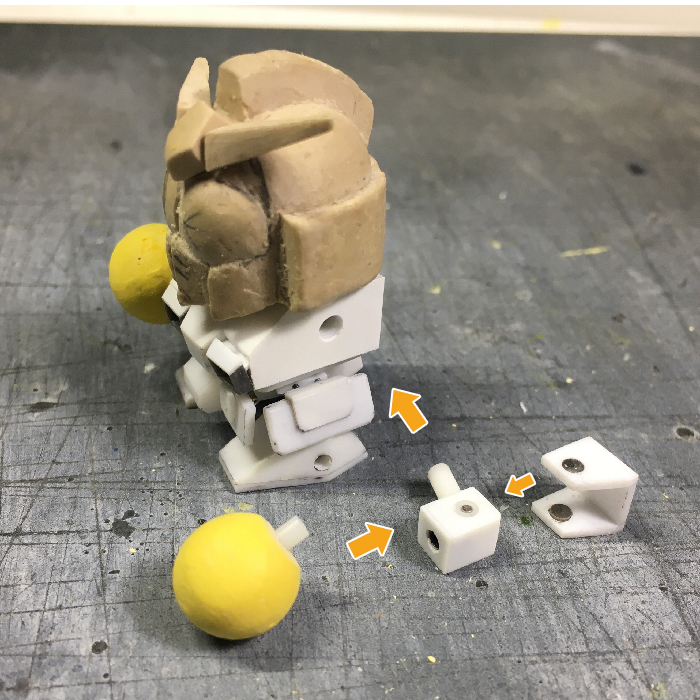 腕は拳の球体、可動軸を仕込んだ腕、肩アーマの3つで構成されています。