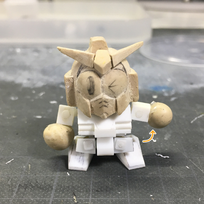 頭部はほぼエポパテ、胴体と手足などはプラ板とプラ棒の組み合わせで作りました。