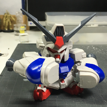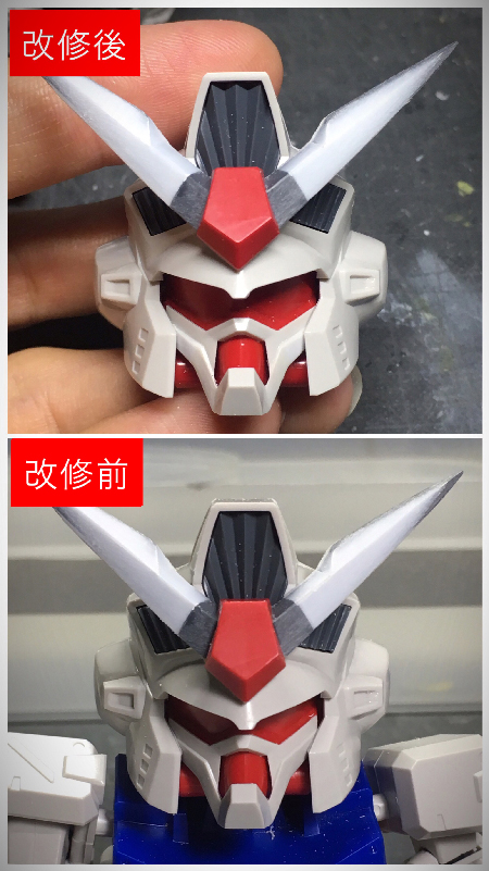 顔の造りはGP02らしくガッシリしてて好印象でしたが、目がヘルメットの中に入り過ぎて、SDとしては小さく感じて気になったので手を加えました。