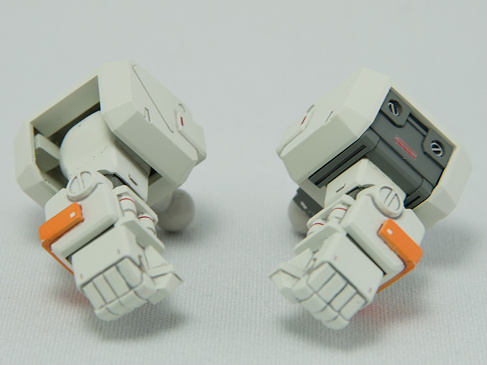 まず(1)と(2)の関節カバーは胴体と肩アーマー、肩アーマーと上腕のスキ間を埋めています。